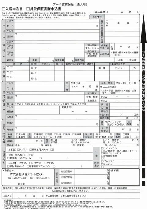 アーク賃貸保証(法人様)申込書