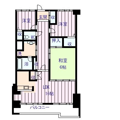 2ヶ月 | 1ヶ月 | 3LDK 和室 6畳 洋室 5.5畳、4.4畳 LDK 16畳 |