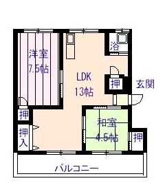 2ヶ月 | なし | 2DK 洋 7.5畳 和 4.5畳 LDK 13畳 |
