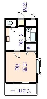 1ヶ月 | 1ヶ月 | 1K 洋室 7畳 K 2畳 |