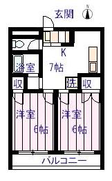 2ヶ月 | 1ヶ月 | 2DK 洋室6畳×2 DK6.9畳 |