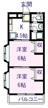 なし | 1ヶ月 | 2K 洋室 6畳×2 K 4.5畳 |