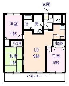 2ヶ月 | 1ヶ月 | 3LDK LDK 9.5畳 和室 6畳 洋室 6畳×2 |
