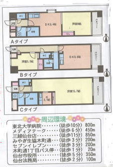 ◎ 全室40uの広い間取りでゆったり、開放感溢れる天井高 ◎ 中心街で都市機能満喫!買物も便利!!通勤・通学等も便利 ◎ 東北大病院・メディアパーク・三越・生協スーパー・市役所・セブンイレブン至近便利 |